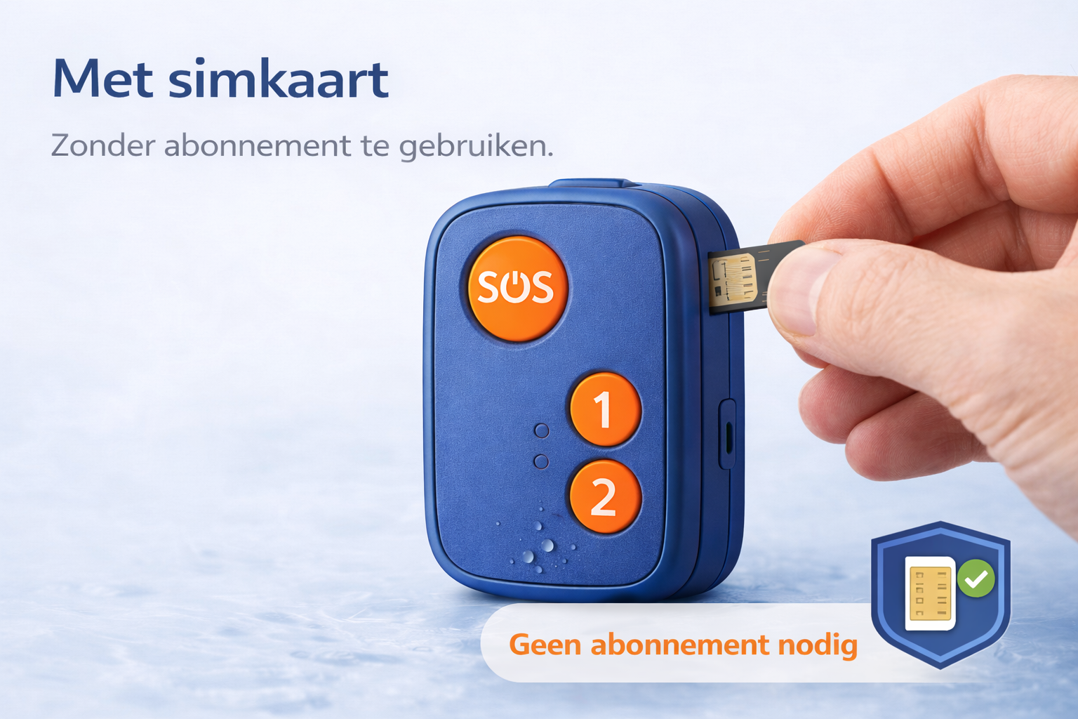 - U heeft geen abonnement. U kunt het tegoed op de simkaart opladen als u de alarmknop gebruikt, als u deze niet gebruikt betaalt u dus ook niets.